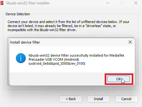 - “Device filter successfully installed” ka message aayega. Ab aapka phone kisi bhi tool mein connect ho jayega.